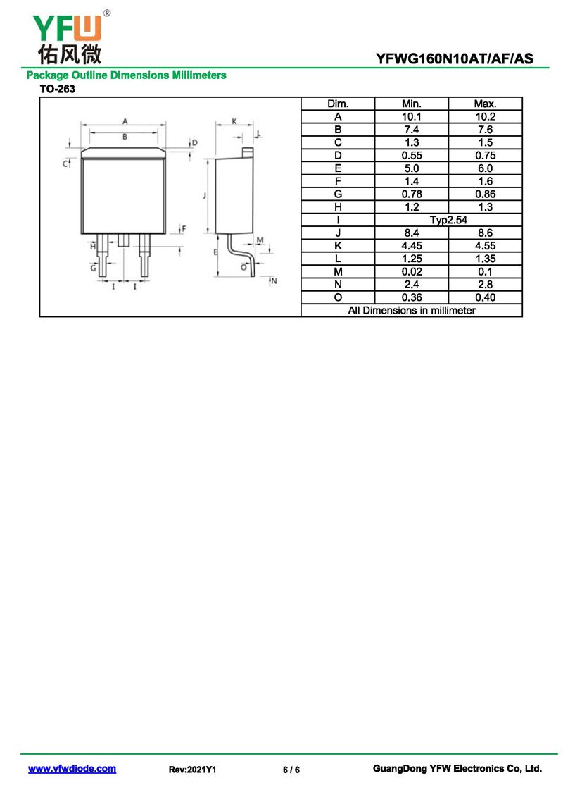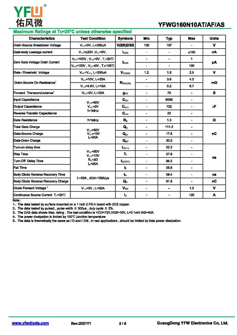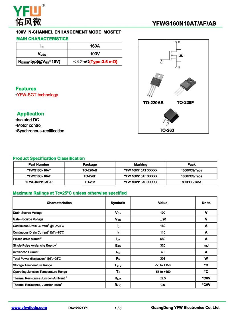 場效應管YFWG160N10AS-R 規格書_價格_PDF手冊-廣東佑風微原廠YFWG160N10AS-R TO-263_(YFW佑風微)品牌