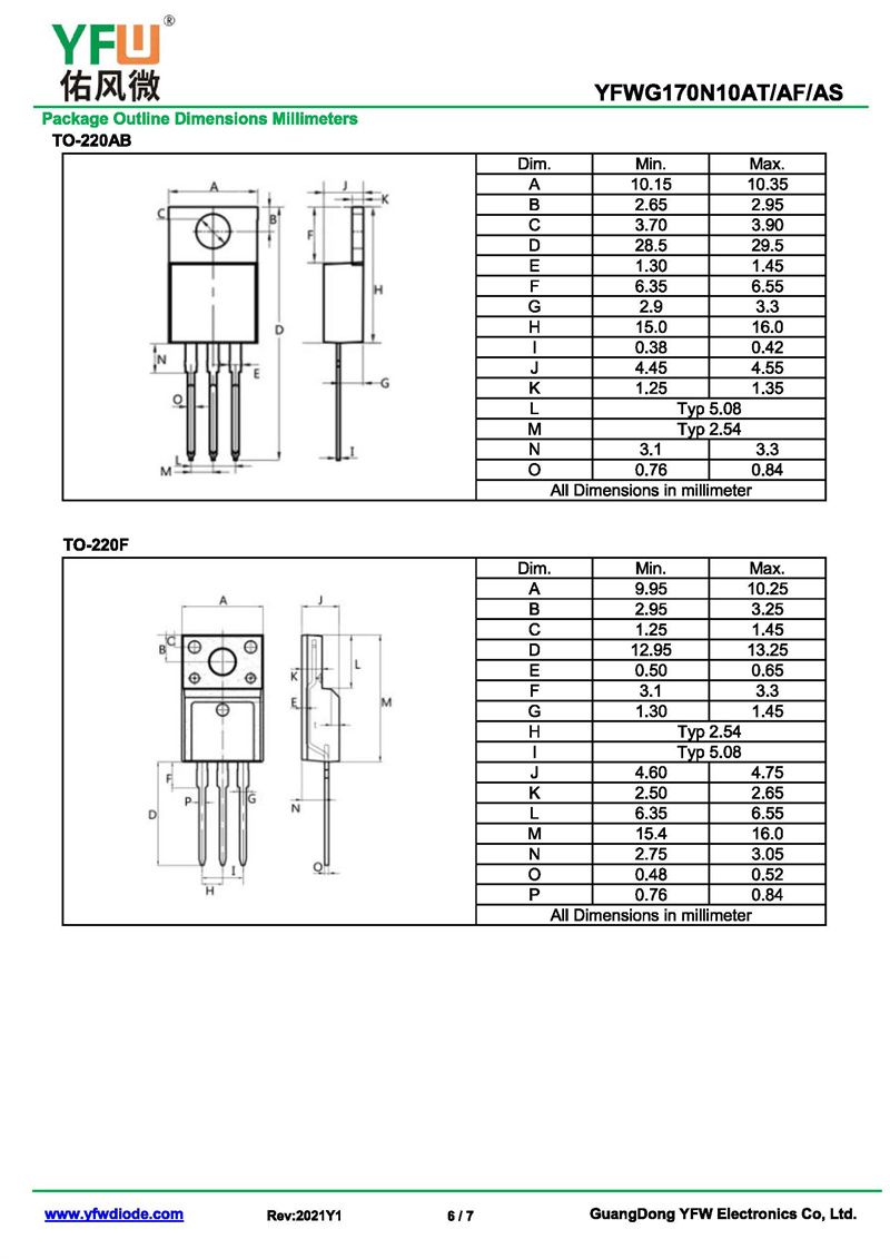 場效應管YFWG170N10AS-R 規格書_價格_PDF手冊-廣東佑風微原廠YFWG170N10AS-R TO-263_(YFW佑風微)品牌